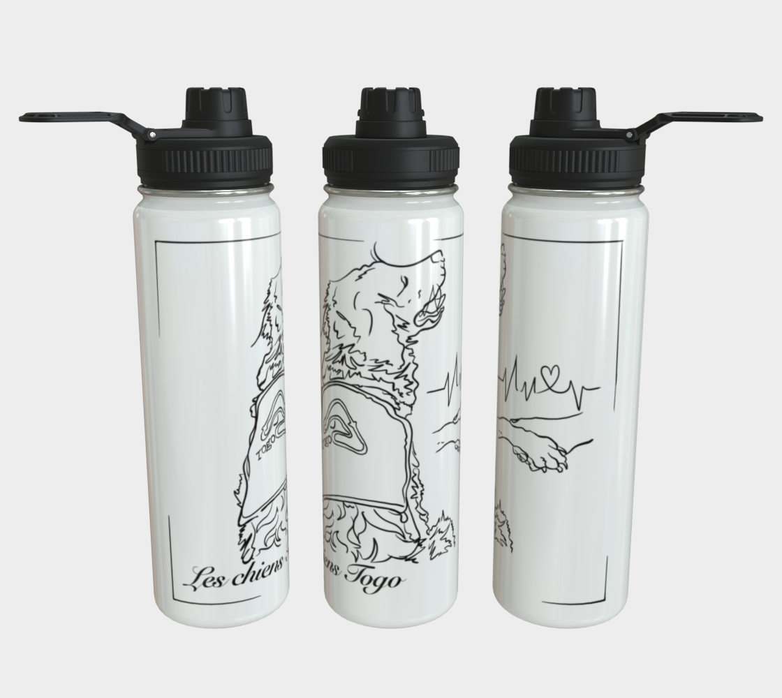 Voici la superbe bouteille d'eau en acier inoxydable TOGO! Notre bouteille d'eau de 24 oz est dotée d'une impression UV. Conçues pour durer et être pratique, chaque bouteille d'eau est dotée d'un bouchon détachable et d'une boucle de transport rigide.